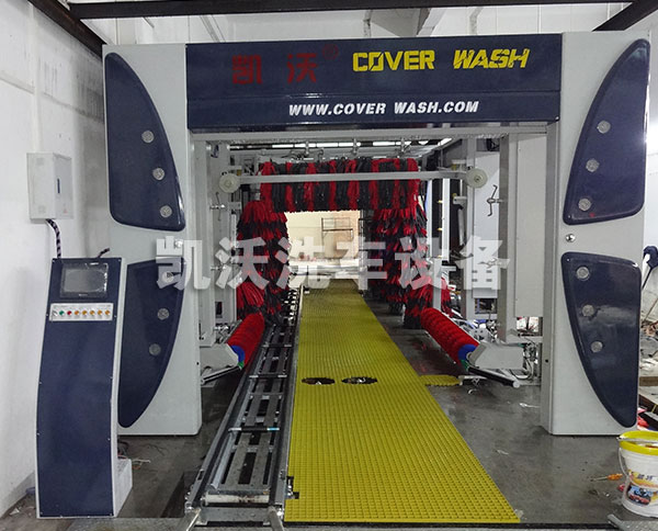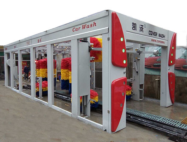 凱沃隧道連續(xù)式電腦洗車機(jī)主要用于轎車、越野車、小型面包車、箱式等車輛的外表進(jìn)行高壓水沖洗、清洗劑洗、刷洗、蠟洗、風(fēng)干和拋光作業(yè)。當(dāng)車輛被輸送機(jī)送入洗車房后,首先由擺動(dòng)式高壓水刀完全沖掉附于車體上的微小砂礫及灰塵;再經(jīng)噴淋發(fā)泡清洗液和多組洗車機(jī)專用刷滾對(duì)車輛表面及輪轂作多角度包裹清洗;經(jīng)高壓風(fēng)干后,再由三組特柔拋光刷作擦拭,使汽車表面更加光亮如新。